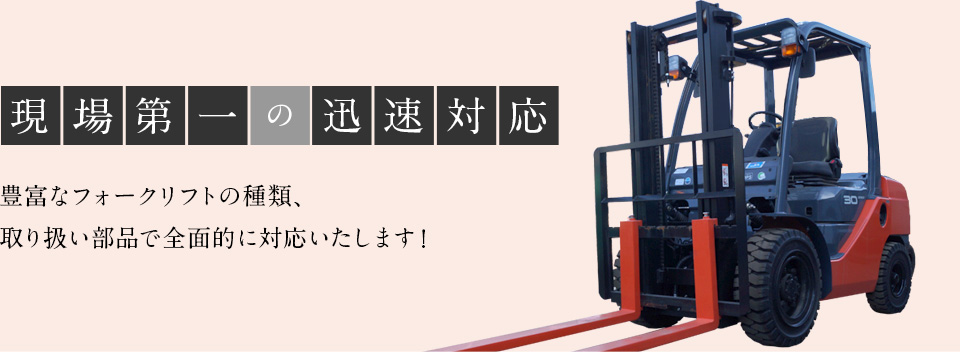 第一フォークリフトでは、「迅速な対応」「安価でご利用しやすい価格設定」「確実、丁寧な修理対応」を心がけて修理・メンテナンスの対応をさせていただいております。